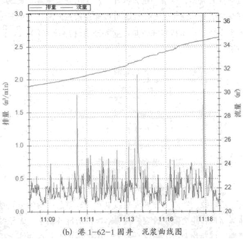 在固井全程的曲線中,也可以發現開始固井的時候,泥漿排量雜波較小,究其原因是剛開始固並時,泥漿管線剛泄壓,管線中還是充滿了液體,雖然振動強度雷同,但是葉片有阻尼,振幅較小,對其影響也較小。例如曲線圖的11;03: 00-11: 03: 53之間的泥漿排量沒有雜波。在港1-62-1固井過程中,水泥漿打了413澎,結果本應該是0的泥漿,卻走數了23.0m³,其影響可謂巨大,並非通過普通的濾波或切除所能排除,必須執行一個特殊算法。