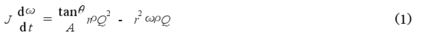 式中J為葉片轉動慣量,θ為葉與軸線之間的夾角,r為渦輪葉片的平均半徑,A為管道流量麵積,ρ為流體密度,ω為渦輪的旋轉角加速度,Q為通過管道的流量。