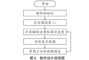 上電後程序對DSP的硬件資源進行初始化,包括中斷係統、GPIO口、定時器/計數器、通信端口及基本的時鍾設置。程序每秒對接收到的脈衝進行計數,其除以儀表係數後的結果作為瞬時流量,同時在時間上對瞬時流量進行累積,計算出兩種流量後,將其實時顯示在液晶顯示屏上,同時將數據保存,**等待上位機電腦對數據的讀取。通信采用MODBUS協議,波特率為9600b/s,無校驗,8位數據位,1位停止位。圖6為微處理器功能設計流程圖。