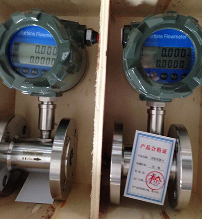 渦輪流量計流體流經傳感器殼體,由於葉輪的葉片與流向有一定的角度,流體的衝力使葉片具有轉動力矩,克服摩擦力矩和流體阻力之後葉片旋轉,在力矩平衡後轉速穩定,在一定的條件下,轉速與流速成正比,由於葉片有導磁性,它處於信號檢測器(由永久磁鋼和線圈組成)的磁場中,旋轉的葉片切割磁力線,周期性的改變著線圈的磁通量,從而使線圈兩端感應出電脈衝信號。