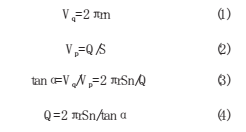 式中,r為葉輪平均半徑;Vq為平均半徑r處流體的切向流速;n為渦輪轉速;Vp為軸向平均流速;S為葉柵的流通截麵積;Q為體積流量。