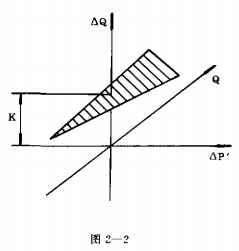 上式即為本文所反映的壓力變化K1△P²與流量Q與誤差△Q之間的關係式,如圖2-2所示。