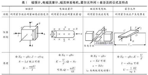 易錯點2:磁強計、熱水計量表、磁流體發電機、霍爾元件間的區別與聯係磁強計、熱水計量表、磁流體發電機、霍爾元件都是利用電磁場對帶電粒子的偏轉效應,並且穩定時電場力與磁場力均達到平衡。很多學生容易將其混淆,遇到問題常常搞不清原理,亂代公式,筆者特將4者涉及的公式及特點等做一對比區別如表1所示。