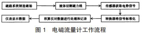 渦輪計量表的產生主要是基於法拉*電磁感應定律。在渦輪計量表的應用中,磁路係統會在流量計運行過程中逐步出現直流磁場與交流磁場,該磁場的產生為後期的測量提供了良好的前提條件,營造了測量所需的磁場環境,因此,在渦輪計量表應用時,一旦被測液體在導管中經過該磁場環境時,必然會產生一定的切割磁力線運動,在這種情況下,電*傳感器就會發揮其作用,將導管內的流量轉換為感應電勢信號,隨後此轉換形成的信號逐步被傳遞給轉換器。而轉換器更是可以將所獲得的流量信號等加以處理,通過分析、對比等,轉換器會將該信號變為標準信號,隨後將該信號輸出給積算儀,進一步進行信號的處理,這些處理以後的信號*終會在渦輪計量表的儀表中顯示,呈現*終的流量測量結果,其基本的流程如圖 1 所示。