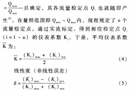 在QQmax,即在測量範圍之外誤差將超過δmax。這就是說雖然渦輪流量傳感器具有很好的重複性,但是由於電脈衝信號頻率F與體積流量Q之間是非線性的,按照常規的平均儀表係數`K的計算方法,對於一定的誤差限士A,由於非線性誤差的存在使得渦輪流量傳感器的工作範圍隻能限定在Qmin~Qmax之內。