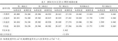 注:標準流量單位,m3/d;被測轉速單位,r/s;K值單位,r/(m2?s)。