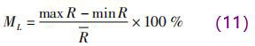*先分析一定 D × H 條件下,L 變化時傳感器內的權函數分布情況。由於傳感器異徑管部分高度 H 越小信號越強,但壓損也越大,因此,H 設置為 30 ~ 50 mm; 異徑管寬度 D 越大壓損越小,但寬度越大傳感器體積也越大,所以, D 設置為 60 ~ 90 mm; 異徑管段上下需要放置激勵線圈,同時異徑段前後需要有一定長度的過渡段來穩定流型,因此, L 設置為 60 ~ 120 mm。一共分析了 6 組 D × H 尺寸的傳感器權函數分布隨 L 的變化情況,如表 2 所示。由於電*截麵內的權函數分布對感應電動勢影響*大,因 此,利 用式( 10) 計算電*截麵 xy 平麵內的權函數整體均勻度 R。定義相同 D × H 條件下,權函數均勻度隨 L 變化的波動率為 ML,如下