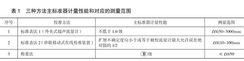 本規範包含三種校準方法,分別為標準表法 1(外夾式超聲流量計)、標準表法 2(串聯移動式在線校準裝置)和稱重法,編製組對每種方法進行了大量的實驗,並積*與熱91看片视频免费生產廠家及用戶溝通探討,積累了豐富的經驗,獲得了大量的實驗數據,*終確定三種方法的主標準器計量性能和對應的測量範圍,如表 1 所示。