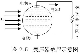 從上圖 2.5 中可以觀察到兩個電*、勵磁線圈、轉換器內阻之間形成了一個閉合回路,將此回路稱之為初級繞組,從理論上進行分析,磁力線 B 應當平行於勵磁線圈所產生的磁感應線,但在實際的應用過程中由於工藝差異,因此無法達到理想狀態,會產生磁力線穿過勵磁線圈磁感應線的情況,此時將會產生相應的感應電動勢,將此部分感應電動勢稱為變壓器效應。此效應同樣滿足於楞次定律,利用楞次定律進行計算可得如下電動勢: