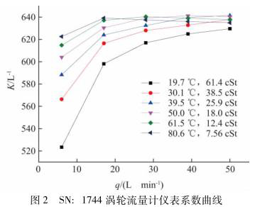 本文以航空潤滑油流量標準裝置為試驗平台,對4支熱水計量表在不同溫度點進行校準試驗,對儀表係數隨粘度和流量變化關係進行分析,並通過雙指數衰減函數對儀表係數(K)和頻率與粘度之商(F/υ)進行曲線擬合。