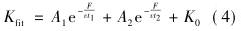 可由平均流速和運動粘度計算得到,所以儀表係數K是流量計輸出頻率與運動粘度之商(F/v)的函數。研究*終確定采用雙指數衰減函數進行擬合,雙指數衰減函數Kfit表示為