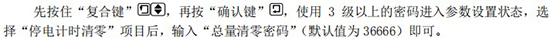 “積算總量清零”密碼可以在用 3 級密碼進入設置狀態後,在“清積算量密碼”菜單下置入您想要設置的“積算總量清零”密碼,修改原來的“積算總量清零”密碼。注意:請記下您的“積算總量清零”密碼。