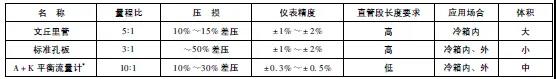 空分設備低溫液體流量的測量從原理上來分,有差壓式流量計、渦街流量計、科裏奧利質量流量計等。但由於低溫液體特性及各方麵外在因素的影響,流量計在測量過程中或多或少會存在著一些問題,需要引起重視。差壓式流量計的性能比較見表1。