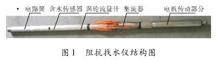 阻抗找水儀結構如圖 1 所示,它主要由含水率計和產量計兩部分組成。含水率計部分主要由電路筒、含水率傳感器組成。產量計部分主要由dn5091看片儿免费看、集流器及電機傳動部分組成。