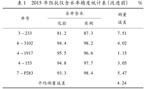 對 2015 年和 2016 年含水率傳感器改進前、後同一時期(3 月份)的含水率測量精度進行了統計,見表 1、表2。改進後的含水率傳感器測量精度提高了 2.85%。