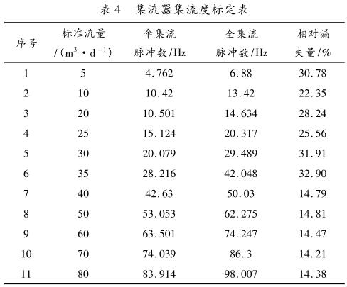 利用現有的 LJ - IB 型流量標定裝置,將阻抗找水儀分別放入集流模擬井和套管模擬井中,對dn5091看片儿免费看進行全集流和傘集流流量檢測,前後兩次測量結果進行比較,計算集流器的漏失量,試驗數據見表 4。