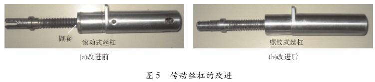 91看片下载免费观看對電機傳動絲杠的結構進行了改進,去掉原有的擷套及滾珠,改為 M8 ×1.25 螺紋式,如圖 5(b)所示。改造後的傳動絲杠采用了精加工工藝,研磨度為1.6 ,由於製造精度高,不會增加阻力。與原有的滾珠式電機傳動絲杠相比較,現有的螺紋式電機傳動絲杠不易產生滑扣現象,耐用、可靠。